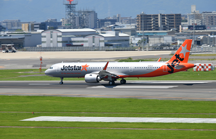 A321LRで運航し福岡空港を離陸するジェットスター・ジャパンの成田行きGK502便=22年7月1日 PHOTO: Yusuke KOHASE/Aviation Wire