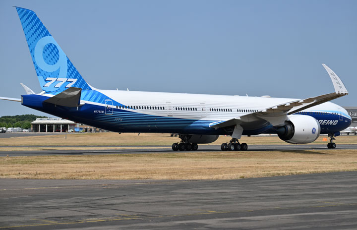 ファンボロー航空ショーで飛行展示を終えて着陸した777-9=22年7月18日 PHOTO: Tadayuki YOSHIKAWA/Aviation Wire