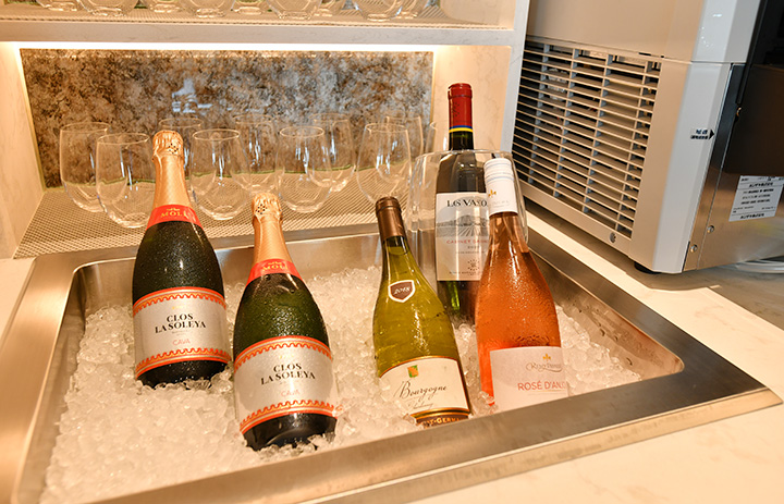 デルタ航空が羽田空港に開設する新ラウンジ「デルタ スカイクラブ」で提供するスパークリングワイン=22年7月28日 PHOTO: Yusuke KOHASE/Aviation Wire