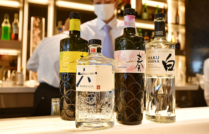 デルタ航空が羽田空港に開設する新ラウンジ「デルタ スカイクラブ」で提供する国産蒸留酒=22年7月28日 PHOTO: Yusuke KOHASE/Aviation Wire