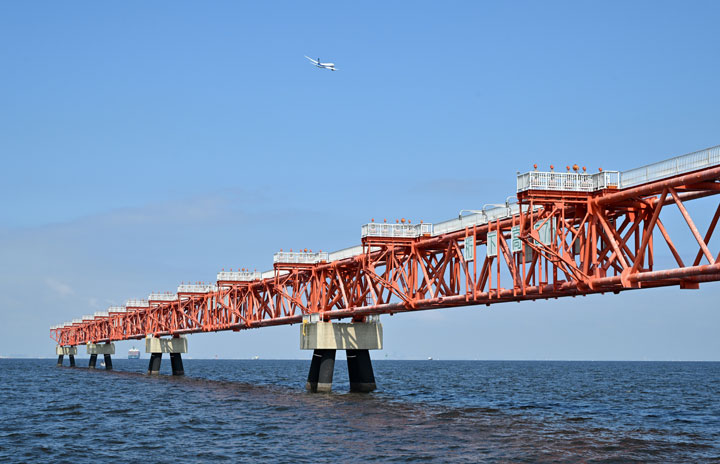 JALの「屋形船de航空教室」の船上から見た羽田空港D滑走路の進入灯=22年9月3日 PHOTO: Tadayuki YOSHIKAWA/Aviation Wire