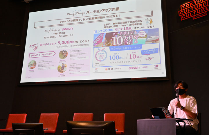 ピーチとの提携を発表する東急の川元一峰課長補佐=22年9月5日 PHOTO: Tadayuki YOSHIKAWA/Aviation Wire