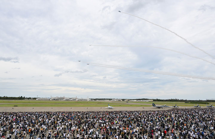小松基地航空祭で曲技飛行を披露するブルーインパルスのT-4=22年9月19日 PHOTO: Tadayuki YOSHIKAWA/Aviation Wire