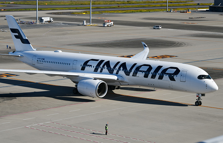 羽田空港の駐機場へ向かうフィンエアーのヘルシンキ発AY61便初便=22年10月31日 PHOTO: Yusuke KOHASE/Aviation Wire