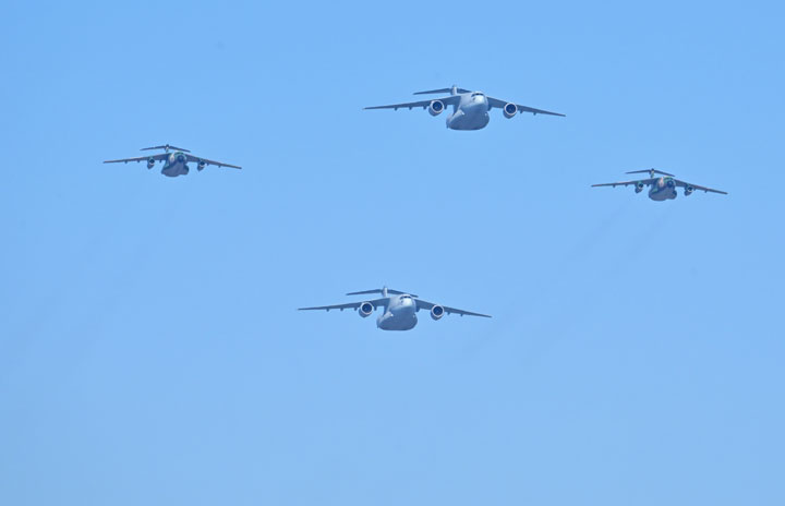 入間航空祭で展示飛行するC-2とC-1=22年11月3日 PHOTO: Tadayuki YOSHIKAWA/Aviation Wire