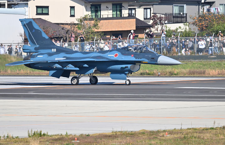 入間航空祭の地上展示を終えて百里基地に帰投するF-2A=22年11月3日 PHOTO: Tadayuki YOSHIKAWA/Aviation Wire