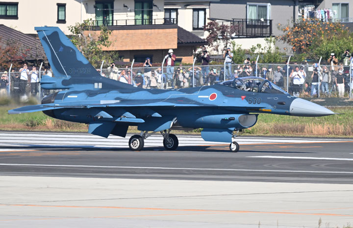 入間航空祭の地上展示を終えて百里基地に帰投するF-2A=22年11月3日 PHOTO: Tadayuki YOSHIKAWA/Aviation Wire
