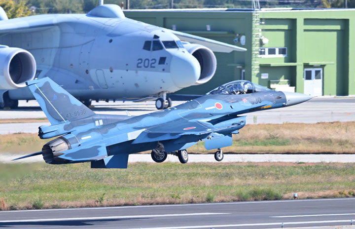 入間航空祭の地上展示を終えて百里基地に帰投するF-2A=22年11月3日 PHOTO: Tadayuki YOSHIKAWA/Aviation Wire