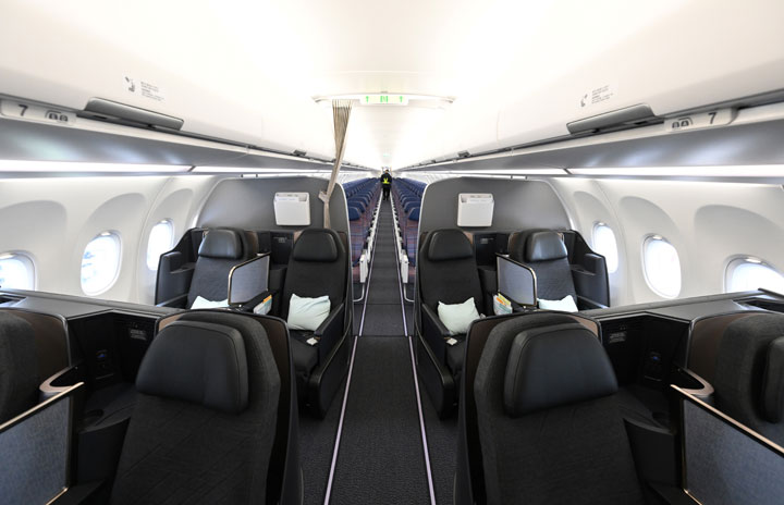ソウル-羽田線に就航した大韓航空のA321neoのビジネスクラス=23年2月14日 PHOTO: Tadayuki YOSHIKAWA/Aviation Wire
