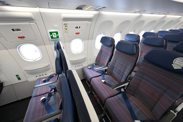 ソウル-羽田線に就航した大韓航空のA321neoのエコノミークラス非常口席=23年2月14日 PHOTO: Tadayuki YOSHIKAWA/Aviation Wire