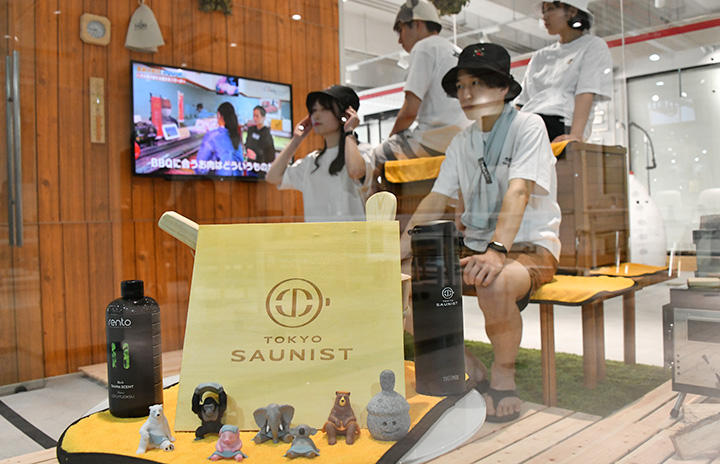 新サービス「TOKYO SAUNIST」でサウナ室内を模した個室に入るJALの社員=23年2月20日 PHOTO: Yusuke KOHASE/Aviation Wire