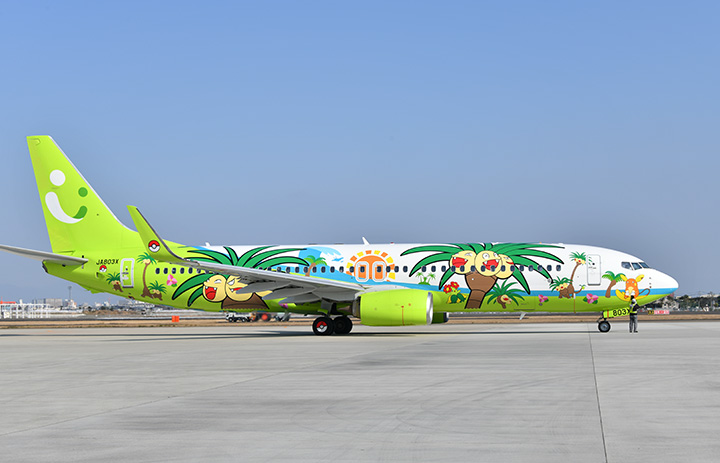 宮崎空港を出発するソラシド初の全面塗装機となる「ナッシージェット宮崎」初便の那覇行き6J67便=23年3月2日 PHOTO: Yusuke KOHASE/Aviation Wire