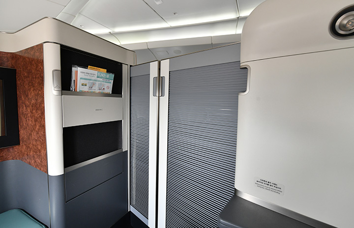 大韓航空の747-8ファーストクラスに備えるスライドドア=23年3月10日 PHOTO: Yusuke KOHASE/Aviation Wire