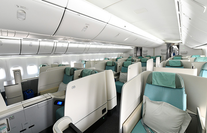 大韓航空の747-8に備えるビジネスクラス=23年3月10日 PHOTO: Yusuke KOHASE/Aviation Wire