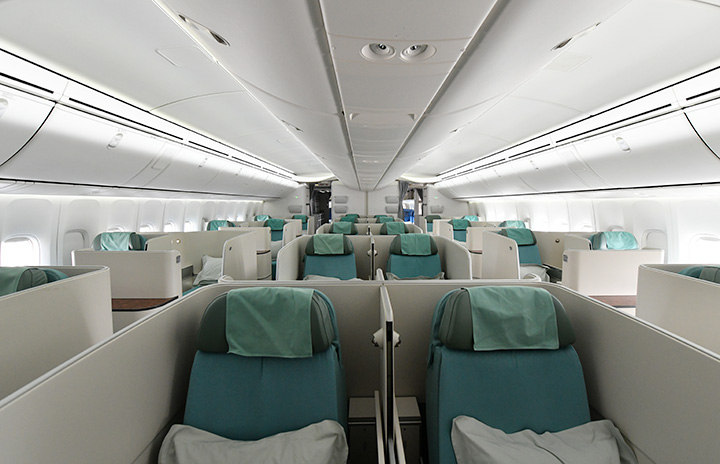 大韓航空の747-8に備えるビジネスクラス=23年3月10日 PHOTO: Yusuke KOHASE/Aviation Wire
