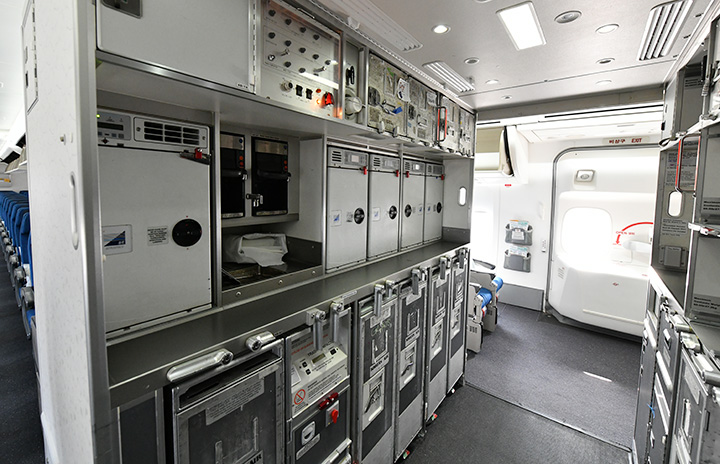 大韓航空の747-8に備えるギャレー=23年3月10日 PHOTO: Yusuke KOHASE/Aviation Wire