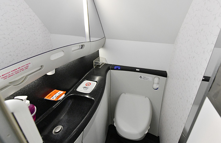 大韓航空の747-8アッパーデッキに備えるラバトリー=23年3月10日 PHOTO: Yusuke KOHASE/Aviation Wire
