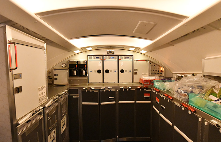 大韓航空747-8のアッパーデッキに備えるギャレー=23年3月10日 PHOTO: Yusuke KOHASE/Aviation Wire