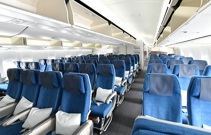 大韓航空の747-8に備えるエコノミークラス=23年3月10日 PHOTO: Yusuke KOHASE/Aviation Wire