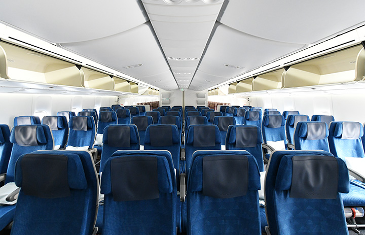 大韓航空の747-8に備えるエコノミークラス=23年3月10日 PHOTO: Yusuke KOHASE/Aviation Wire