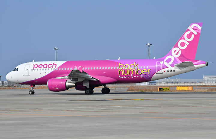 関空を出発するピーチのback numberジェット初便福岡行きMM153便=23年3月10日 PHOTO: Tadayuki YOSHIKAWA/Aviation Wire