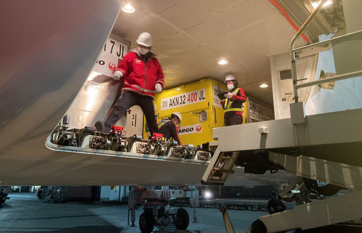 小松空港のグラハンスタッフと地上旅客係員を募集しているJALスカイ金沢(同社提供)
