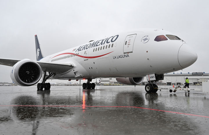 成田空港の16番スポットから出発するアエロメヒコ航空のメキシコシティ行き再開初便AM57便=23年3月26日 PHOTO: Tadayuki YOSHIKAWA/Aviation Wire