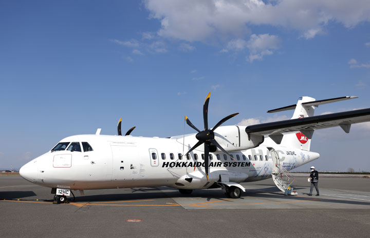 札幌上空遊覧フライトを終えたHACの「雪ミク」ラッピング機=23年3月29日 PHOTO: Kiyoshi OTA/Aviation Wire