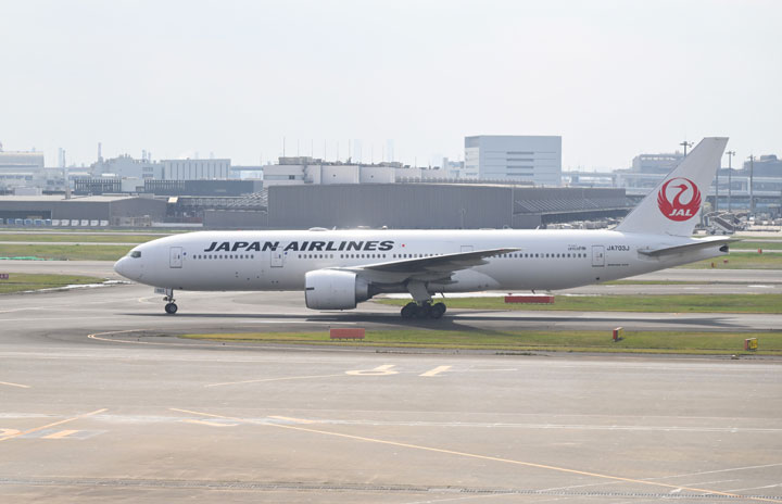 羽田空港に到着する石垣発JL972便の777-200ER JA703J=23年4月2日 PHOTO: Tadayuki YOSHIKAWA/Aviation Wire