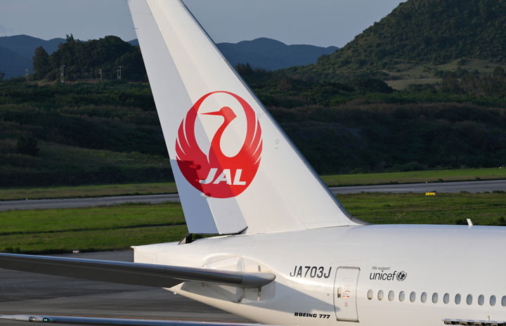 石垣空港に到着した羽田発JL973便の777-200ER JA703J=23年4月2日 PHOTO: Tadayuki YOSHIKAWA/Aviation Wire