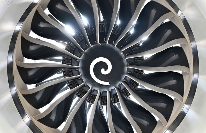 Ron Hermanとのコラボレーションロゴを描いたZIPAIRの特別塗装機JA850JのエンジンGEnx-1B=23年4月13日 PHOTO: Tadayuki YOSHIKAWA/Aviation Wire