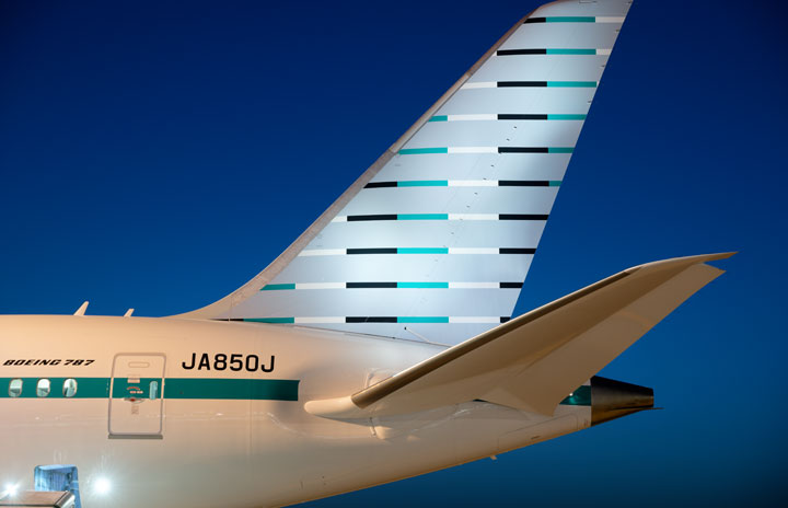 成田空港で出発を待つRon Hermanとのコラボレーションロゴを描いたZIPAIRの特別塗装機JA850J=23年4月13日 PHOTO: Tadayuki YOSHIKAWA/Aviation Wire