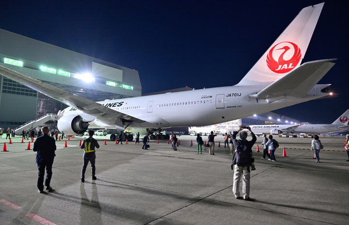 羽田空港でJALの777-200ER初号機JA701Jを撮影するチャーター参加者=23年5月16日 PHOTO: Tadayuki YOSHIKAWA/Aviation Wire