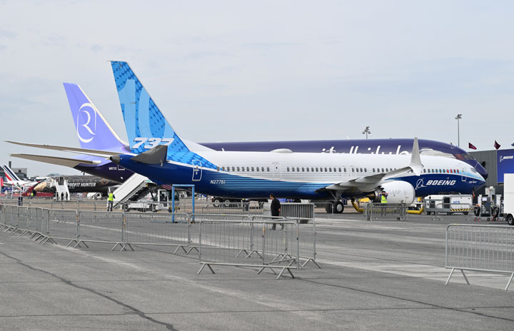 パリ航空ショーで公開された737-10飛行試験機(手前)とリヤド航空の787-9=23年6月18日 PHOTO: Tadayuki YOSHIKAWA/Aviation Wire