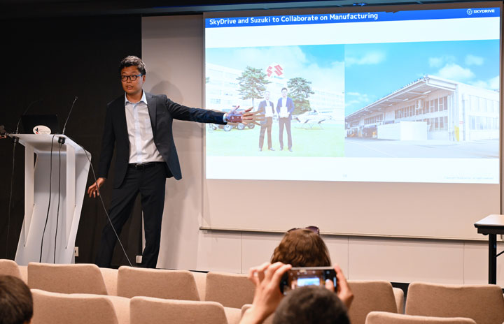 スズキとの基本合意をパリ航空ショーで発表するSkyDriveの福澤知浩CEO=23年6月19日 PHOTO: Tadayuki YOSHIKAWA/Aviation Wire