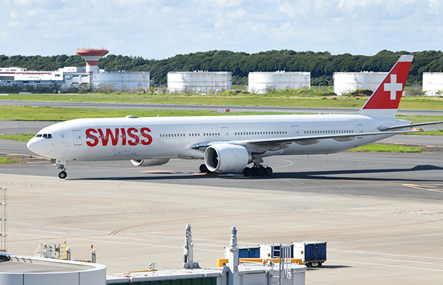 スイス インターナショナル エアラインズの777-300ER=23年9月2日 PHOTO: Yusuke KOHASE/Aviation Wire