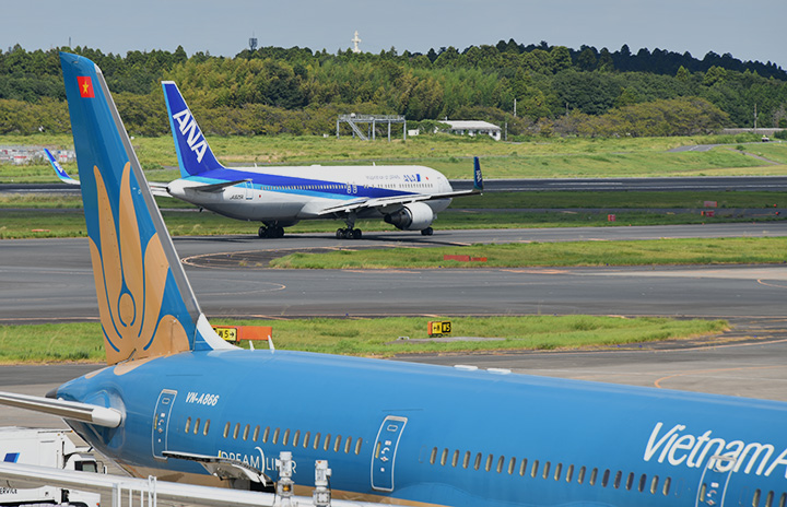 ANAの767-300ER(奥)とベトナム航空の787-9=23年9月2日 PHOTO: Yusuke KOHASE/Aviation Wire