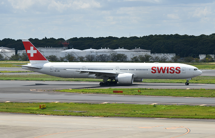 スイス インターナショナル エアラインズの777-300ER=23年9月2日 PHOTO: Yusuke KOHASE/Aviation Wire