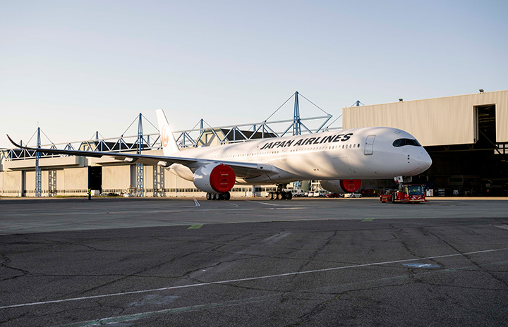 仏トゥールーズでロールアウトするJALのA350-1000初号機=23年10月10日 PHOTO: Frederic Lancelot, master films/Airbus