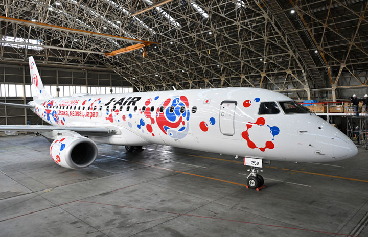 伊丹空港でお披露目されたJALミャクミャクJET=23年11月28日 PHOTO: Tadayuki YOSHIKAWA/Aviation Wire