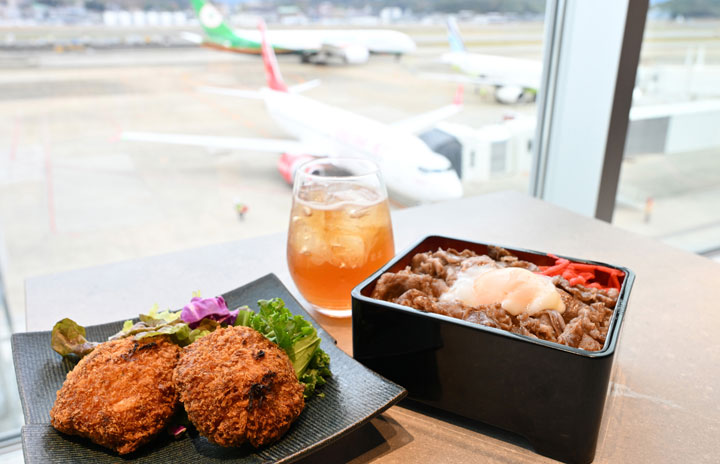 福岡空港国際線ターミナル北側コンコース延伸部分にオープンした「KRAZY MEAT by ODA CHIKUSAN」のメニュー=23年11月30日 PHOTO: Tadayuki YOSHIKAWA/Aviation Wire
