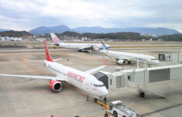 福岡空港国際線ターミナル北側コンコース延伸部分からの眺望=23年11月30日 PHOTO: Tadayuki YOSHIKAWA/Aviation Wire