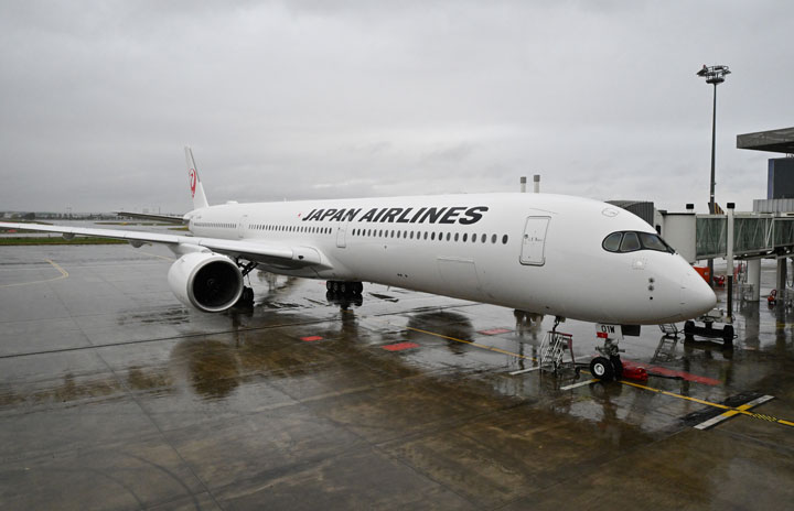 トゥールーズで報道関係者に初公開されたJALのA350-1000初号機=23年12月13日 PHOTO: Tadayuki YOSHIKAWA/Aviation Wire