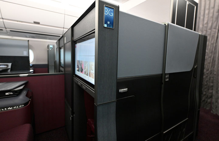 引き戸を閉めたJAL A350-1000初号機の個室ビジネスクラス=23年12月13日 PHOTO: Tadayuki YOSHIKAWA/Aviation Wire