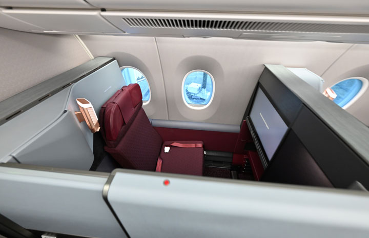 引き戸を閉めたJAL A350-1000初号機の個室ビジネスクラス=23年12月13日 PHOTO: Tadayuki YOSHIKAWA/Aviation Wire