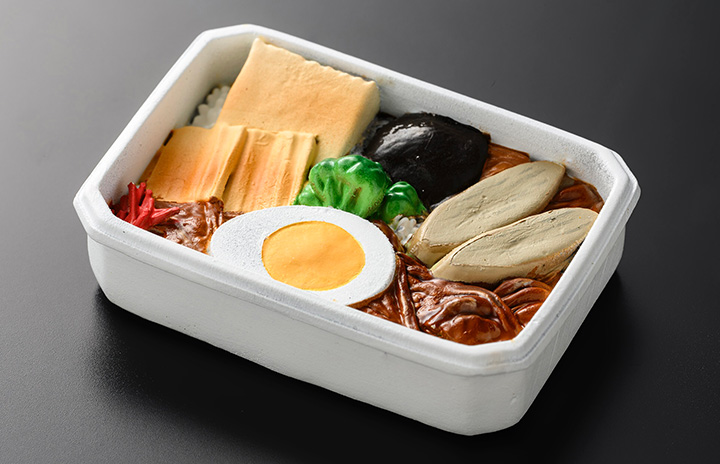 12月に発売するANAの機内食をイメージしたカプセルトイ「牛すき焼き丼」(同社提供)