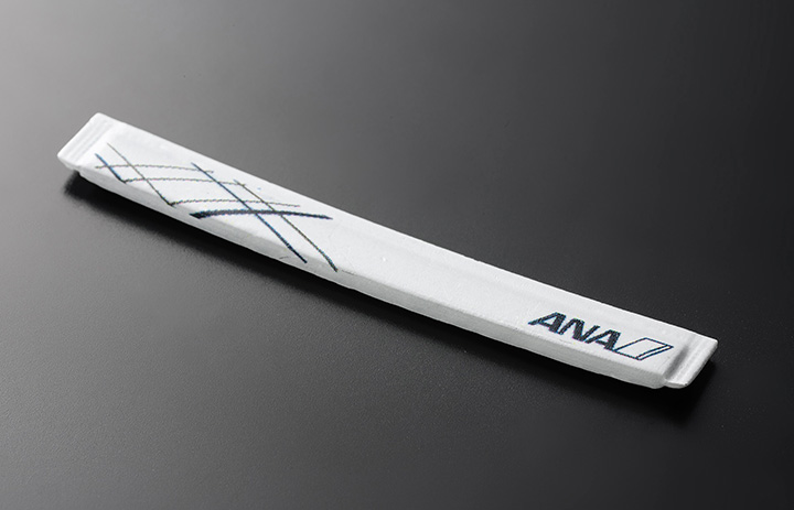 ANAの機内食をイメージしたカプセルトイに付属するミニチュア箸(同社提供)
