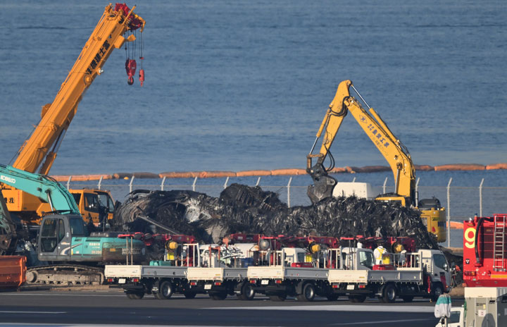 JAL A350-900 JA13XJの撤去作業が進む羽田C滑走路=24年1月6日15時15分 PHOTO: Tadayuki YOSHIKAWA/Aviation Wire