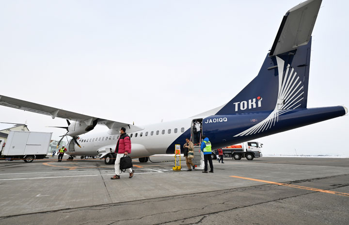札幌丘珠空港へ到着したトキエア初便新潟発BV101便=24年1月31日 PHOTO: Tadayuki YOSHIKAWA/Aviation Wire