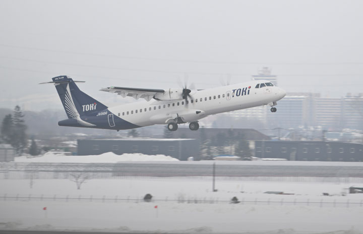 丘珠空港を離陸するトキエアの新潟行き初便BV102便=24年1月31日 PHOTO: Tadayuki YOSHIKAWA/Aviation Wire